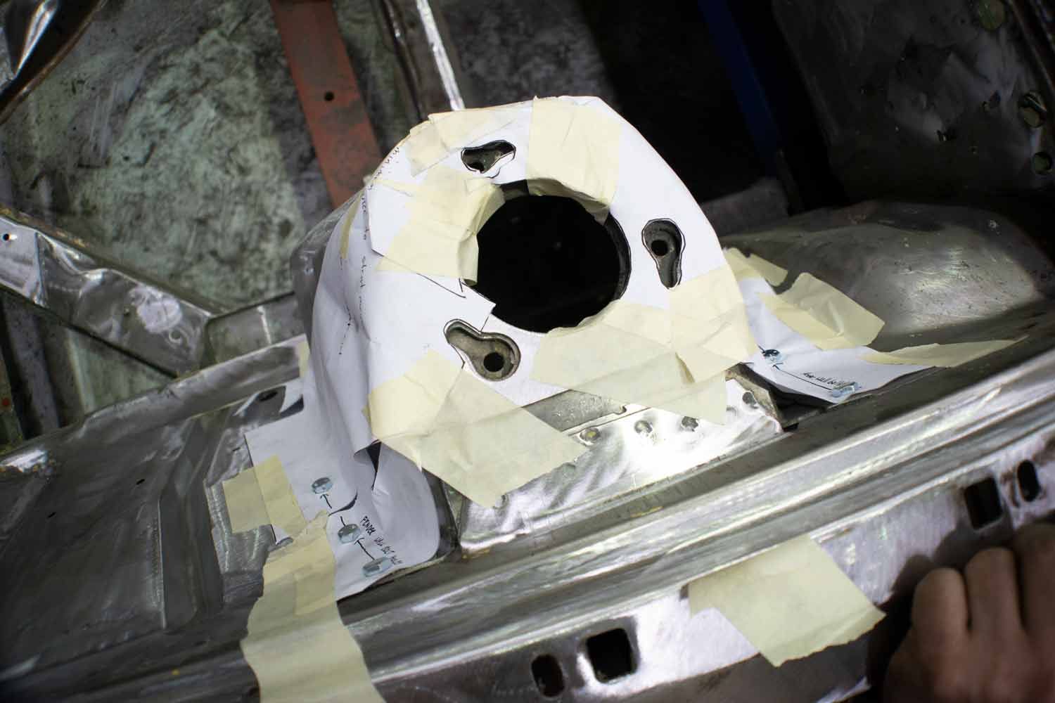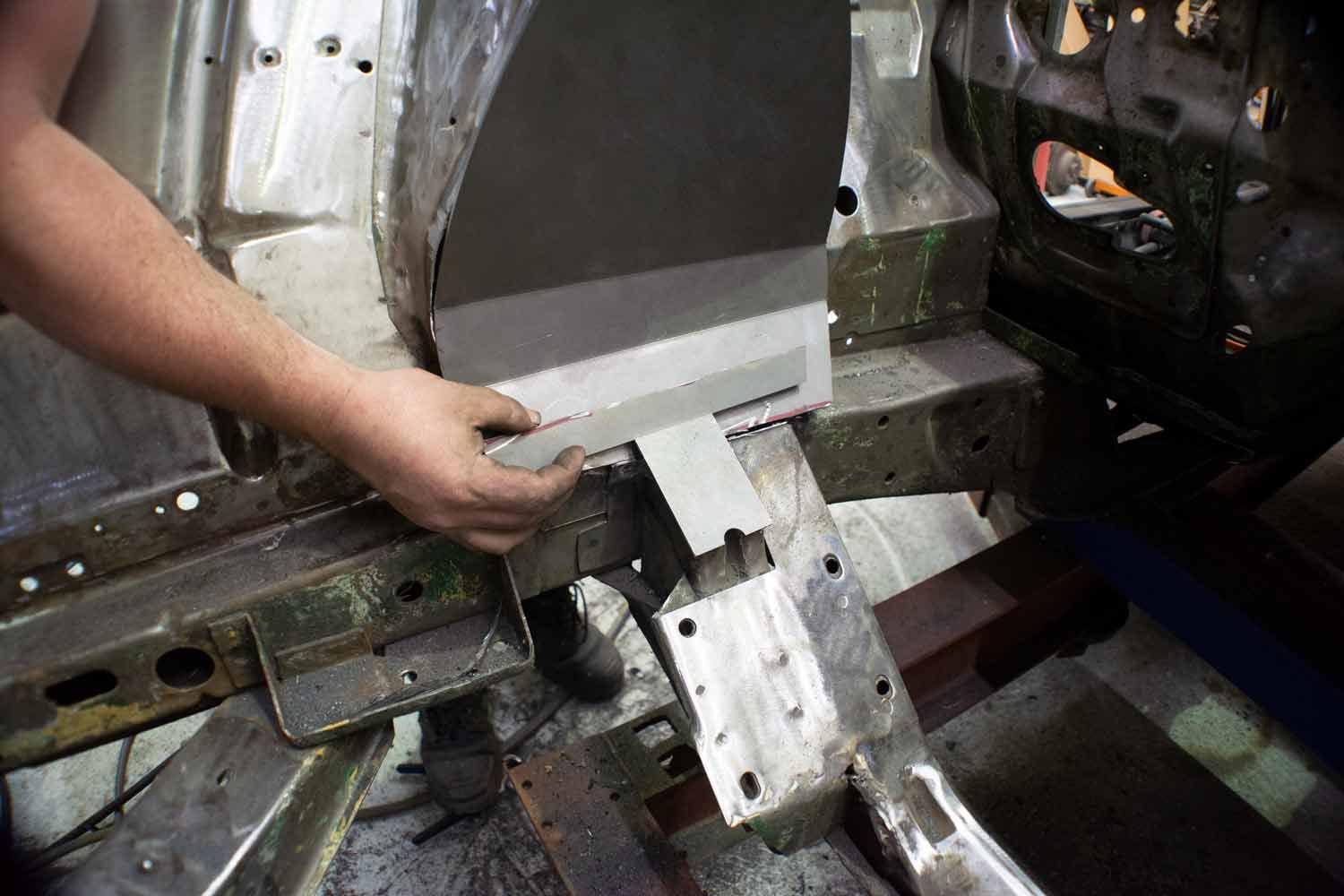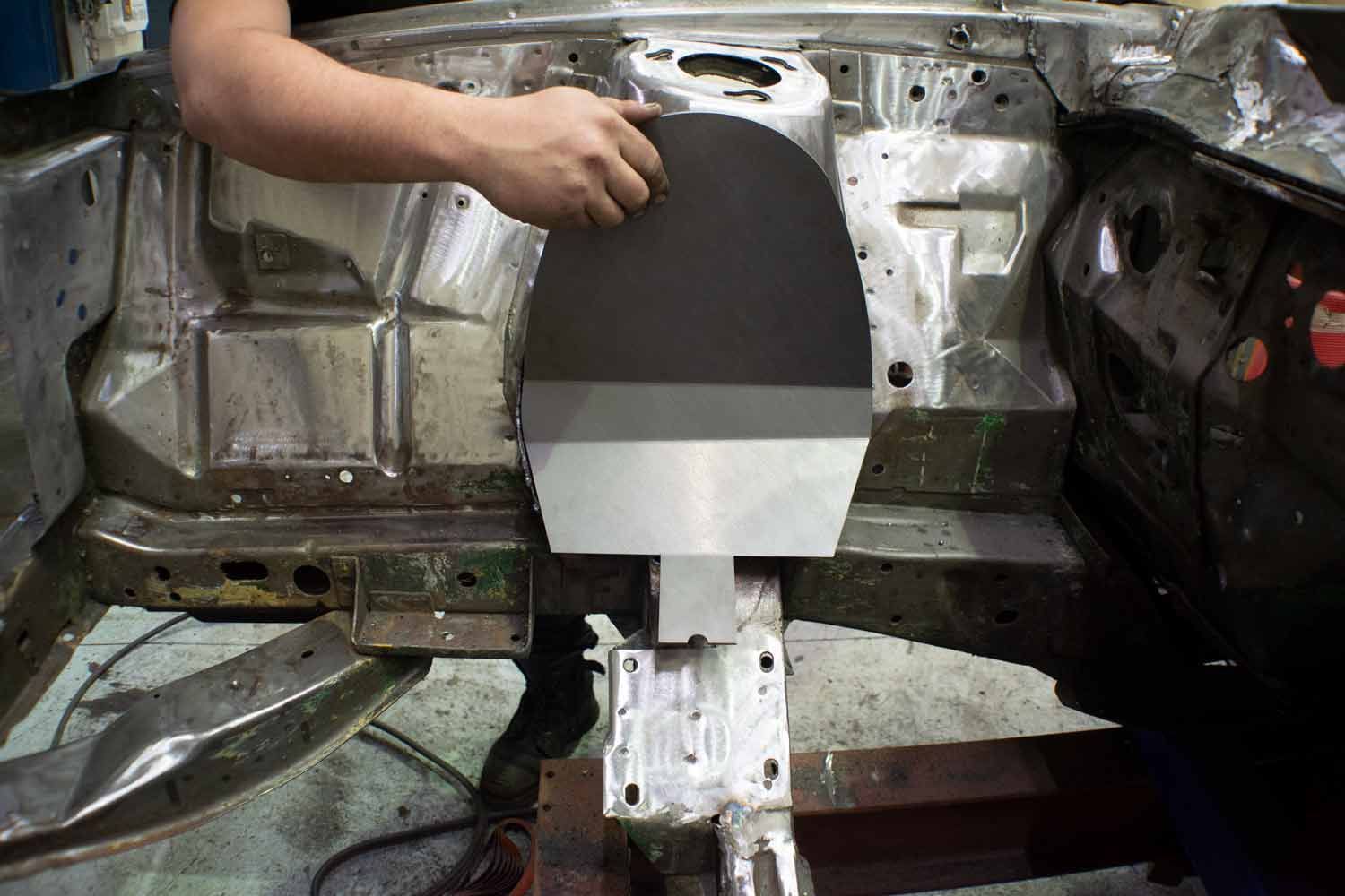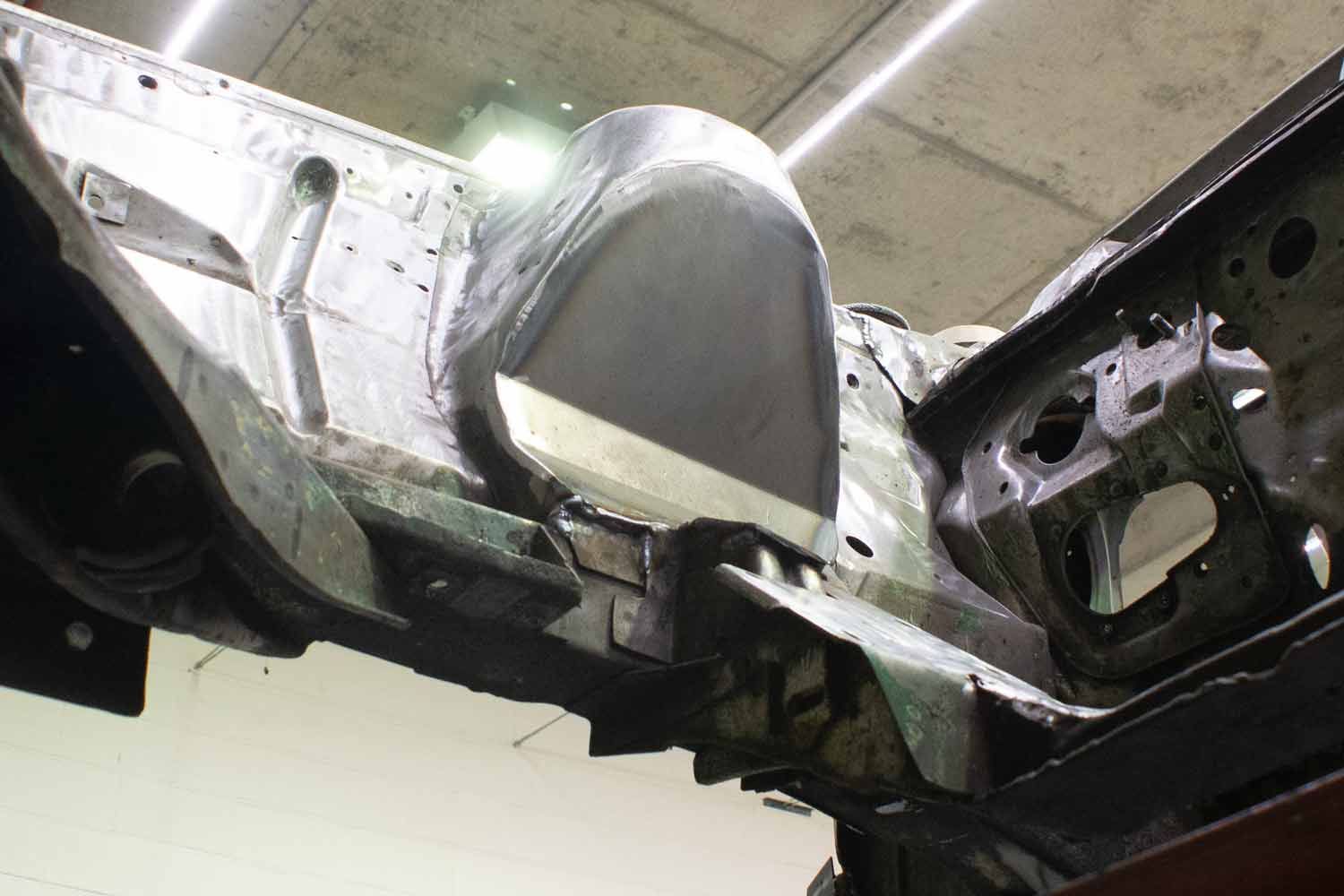 The RRS notching kit is an optional system that will increase the distance between your shock towers by up to 11 inches, allowing ample space for that mammoth 426 or 429 big block as well as turbo small block and hard-to-fit header applications.