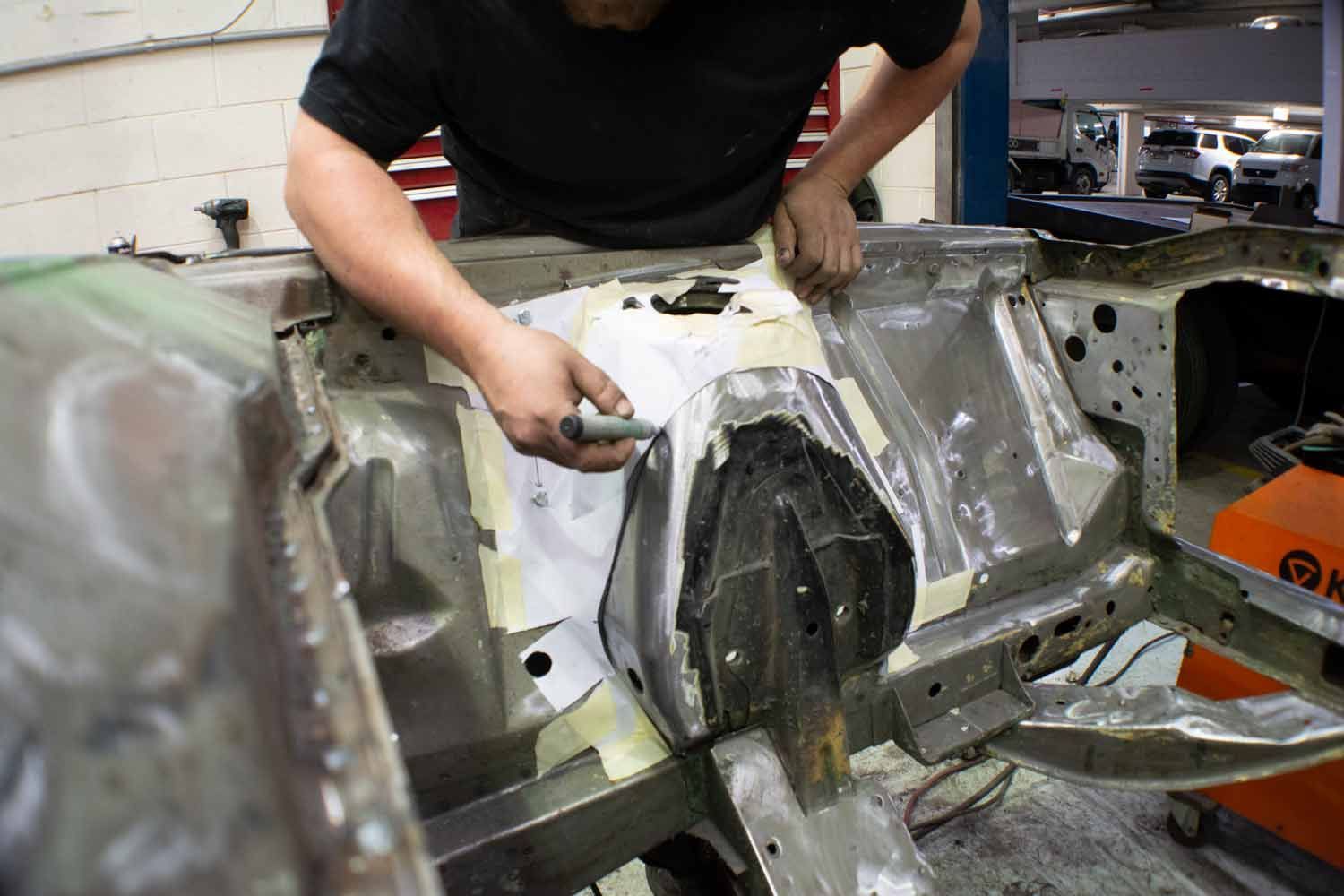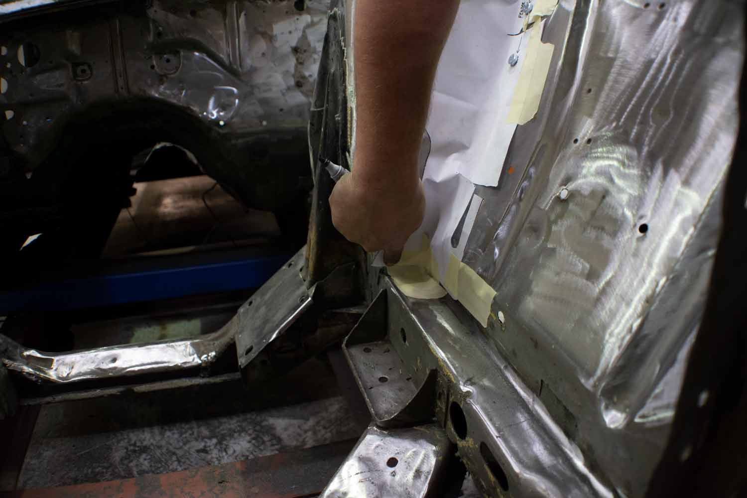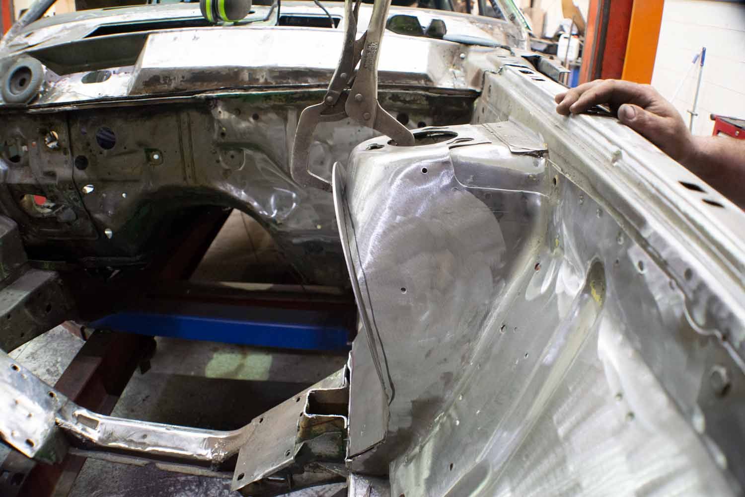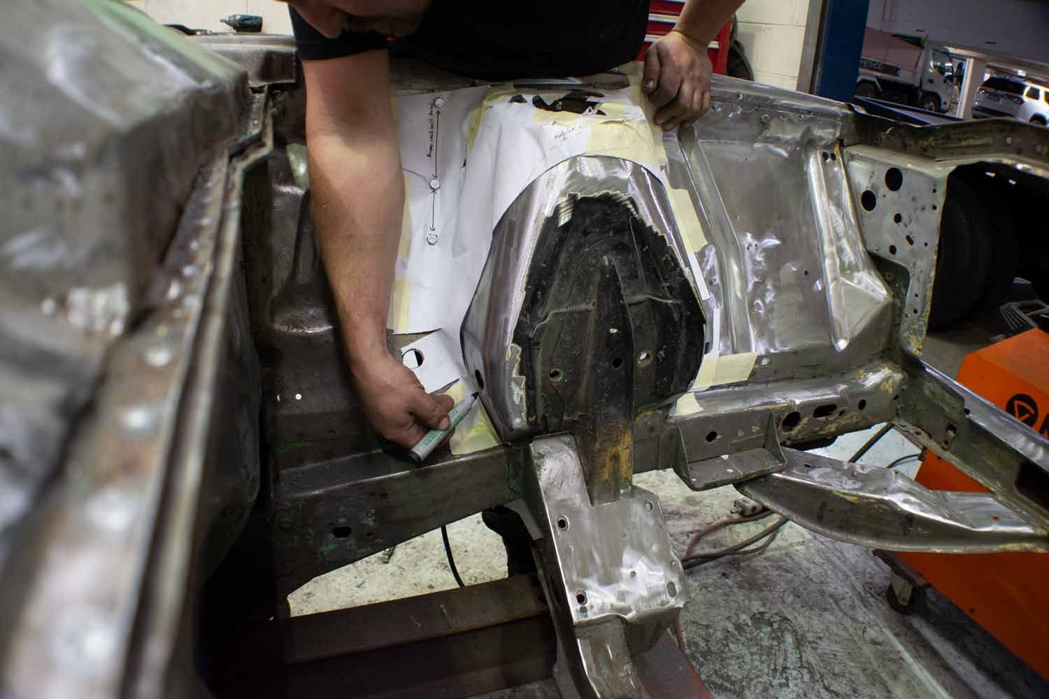 The RRS notching kit is an optional system that will increase the distance between your shock towers by up to 11 inches, allowing ample space for that mammoth 426 or 429 big block as well as turbo small block and hard-to-fit header applications.