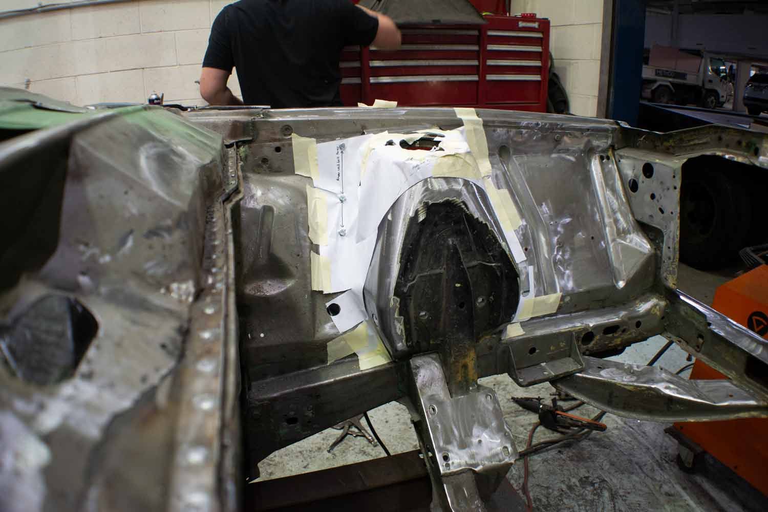 "I want to put 427 dark blocks in my Mad Max coupe but it won't fit. I want to run 17x8 globe Bathurst replica mags and adjust the ride height so the tire sits just right, so I can't use a Mustang2-style front clip. What can I do?"