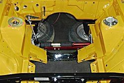 The Ford Maverick engine bay is just 27 inches across. Early Mustang and Falcon engine bays are not much wider. Ford engine bays did exceed 31.5 inches until the Fox-body Mustang. The RRS coil-over deletes the upper control arm, allowing "notching" of the shock towers. You can make room for bigger motors while retaining full suspension travel and improving your suspension performance only with RRS.